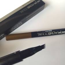 At number six I love the Maybelline eyebrow tattoo pen . It has a high concentrated dye formula which creates a tattoo effect and lasts 24 hours . The comb tip brings hair like strokes which mimics your natural brow line . An absolute bargain and under 7 pounds .